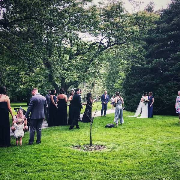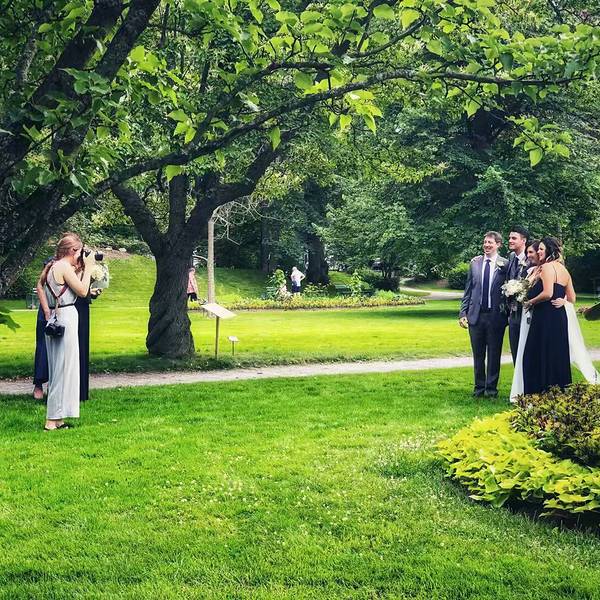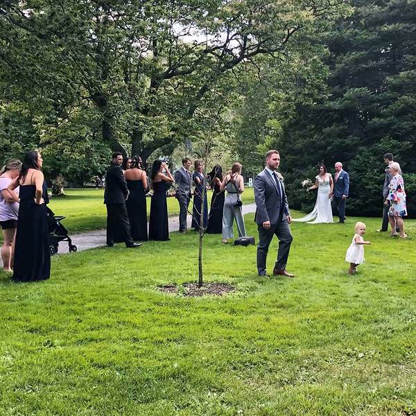 当时在马路对面,看见这边有新娘和伴娘团在往里面走,我们就跟进来啦进来后发现有两对新人。应该是仪式结束了之后过来拍照的。