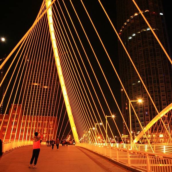 就像所有繁华都市一样,华灯初上的天津在夜晚绽放着自己的风情妩媚就像所有繁华都市一样,华灯初上的天津在夜晚绽放着自己的风情妩媚。走着走着,夜色中散发着奢华气息的大沽桥出现在眼前,而越是走近它,越觉得这座造型简约的大桥优雅大气。忍不住一路按着快门,想要记录下它的...就像所有繁华都市一样,华灯初上的天津在夜晚绽放着自己的风情妩媚。走着走着,夜色中散发着奢华气息的大沽桥出现在眼前,而越是走近它,越觉得这座造型简约的大桥优雅大气。忍不住一路按着快门,想要记录下它的炫目身姿。