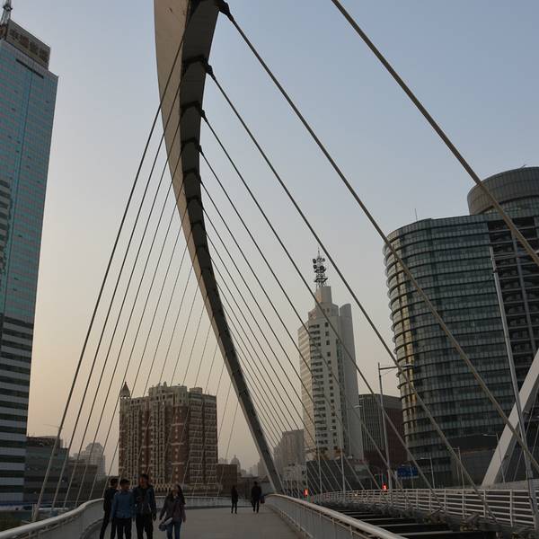 设计的非常的漂亮,天气好的时候聪这里看海河实在是太美了,在桥上拍拍照片真的很不错,天津天气好不...大沽桥可以从滨江道通往意大利风情街,设计的非常的漂亮,天气好的时候聪这里看海河实在是太美了,在桥上拍拍照片真的很不错,天津天气好不是很常见啊。