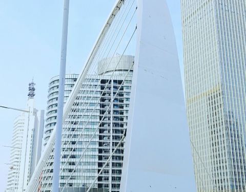 除了美观之外,拱圈上的88根吊杆还将承载106米主跨桥面的所有重量,这个独特的设计把普通桥梁水面桥墩的支撑力变为吊杆的拉力,省去了河中的桥墩,真正打造出了“横跨”海河的壮观大桥。