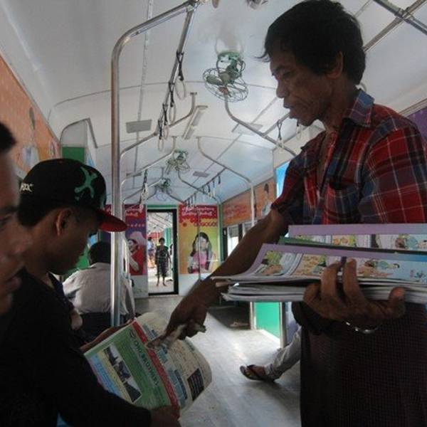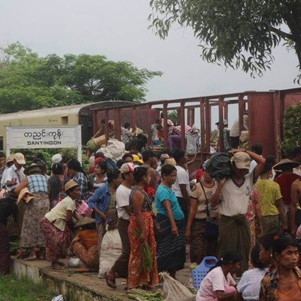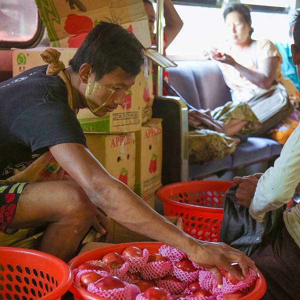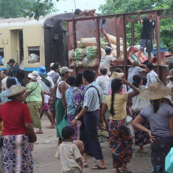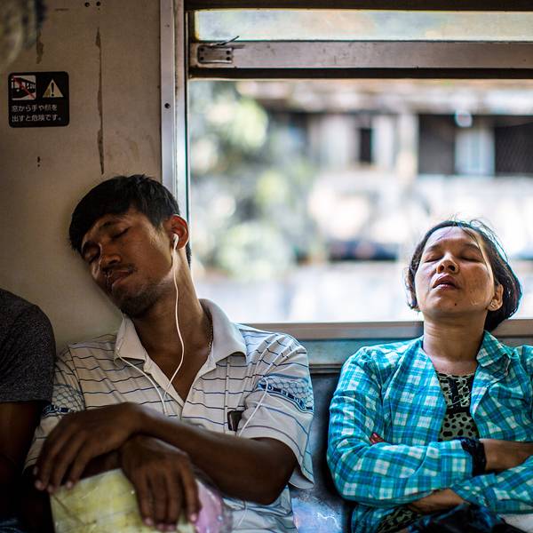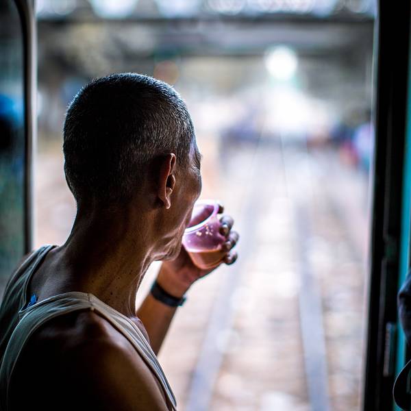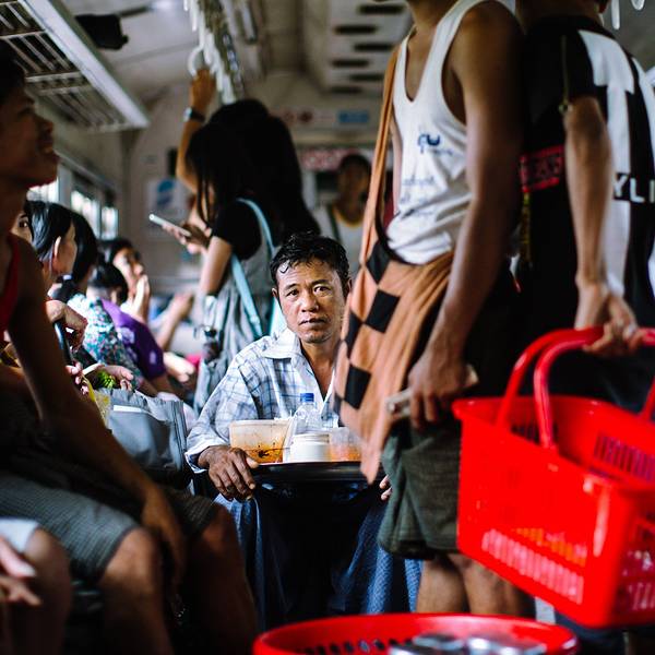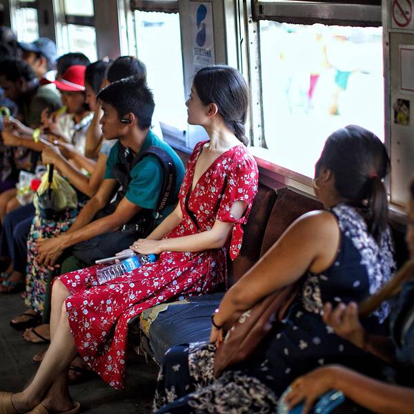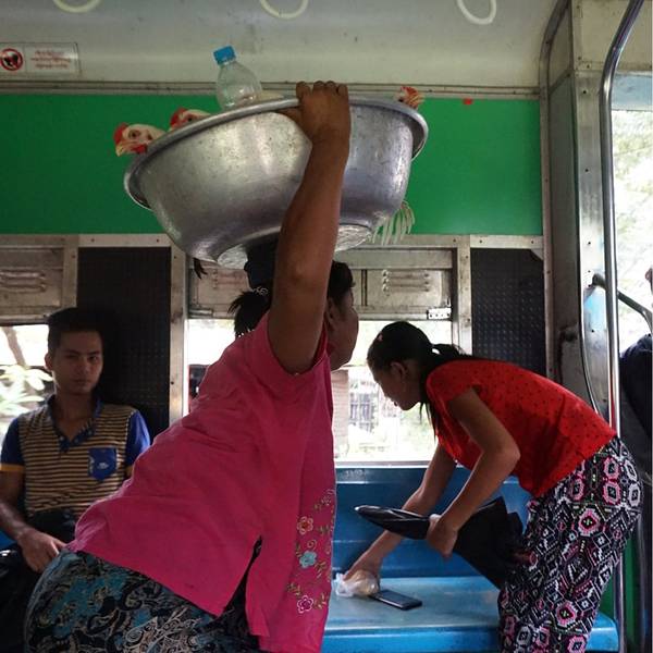 在缅甸,坐一段缓慢、摇、晃的火车,从车流涌动、灯火辉煌的市区坐到房屋破旧、人烟稀少的郊区,仿佛穿越回了上世纪80年代,...-- 环城火车上的市井百态 --