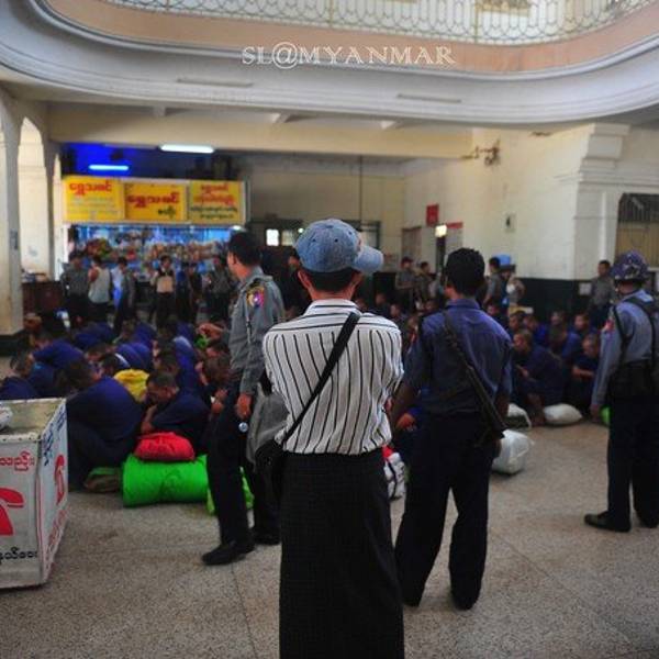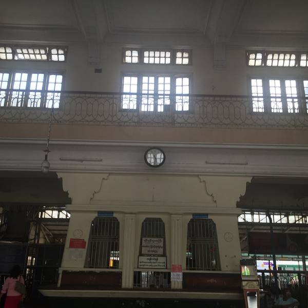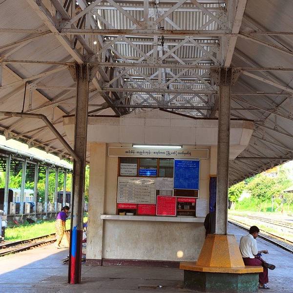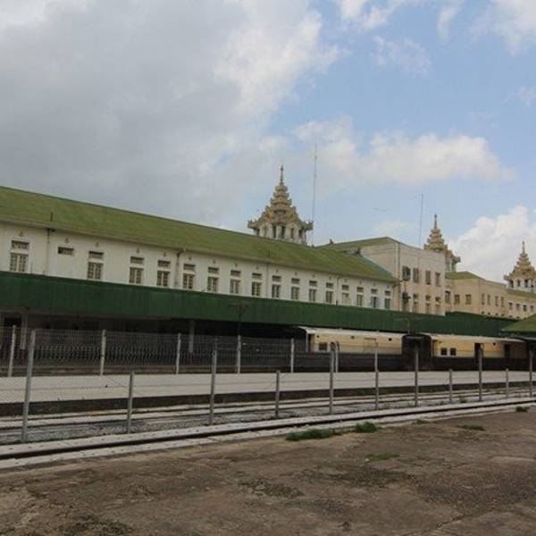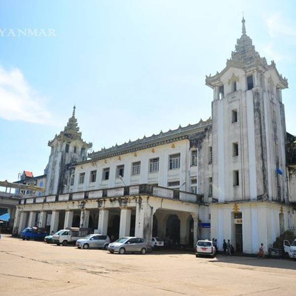 沿着 Nawaday Street 往东走,位于司雷宝塔以北900米处,走出小巷到达大路上就能看到中央火车站乘搭火车。