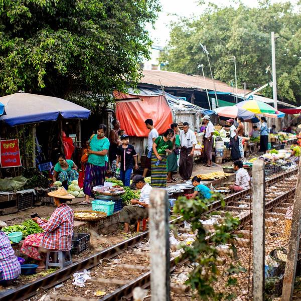 - 仰光的环城小火车连接全市各大区,可随时上下车,是当地人主要的交通工具之一
