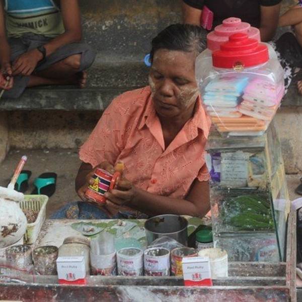 - ...污水沟的酸臭、蔬菜的清香、路边水稻的青草味,车上小贩的芒果香,绝对称得上是仰光的视觉、味觉之旅