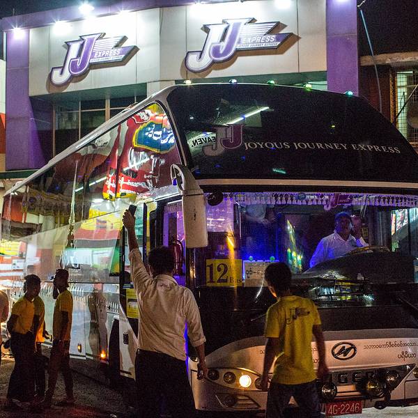 不小心看到三个颇有洗剪吹组合感的少年,看到镜头眼神还突然犀利了起来这次没再满火车的溜达,坐下静静当了回普通乘客。吃槟榔的老人,缅甸男人非常钟爱槟郎这种食物,会将残渣吐在随身的塑料容器中。每当王先生激动地把相机递过来,就知道镜头里八成是个惊天美貌的少女了...果然,这次是位酷似赫敏眼神冷峻的少女。在小火车上摇晃了小半个下午,终于心满意足的返回中央车站。仰光的短暂停留也差不多要结束了。去蒲甘的城际交通,我们跟大多数人一样选择了JJ express的过夜大巴。虽然飞机更节约时间,但缅甸航空境内航线还是有不少事故历史的,实在不敢冒险。再说大巴到蒲甘的时间刚好是天亮之前,也算是多赚了一次日出。JJ的2+1大巴名不虚传,座位宽敞舒服,空调温度也没有传说中那么冻人,盖上提供的薄毛毯刚刚好。实在太困,除了中途必须下车的时间之外,我几乎是从头睡到尾,连发的甜点零食都一口没动。