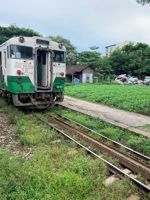 车厢里时不时看到气定神闲看书或补眠的人,好像周围的喧闹被隔离在另一个世界。火车原来是日本淘汰的老式JR,车厢里还留着字样。不知过了多久,决定下车看看站台的日常,再继续跳上另一班车返程。站台上又是另一个菜市场,主妇们边聊天边选着菜,心满意足后就穿过铁轨抄近路回家去。