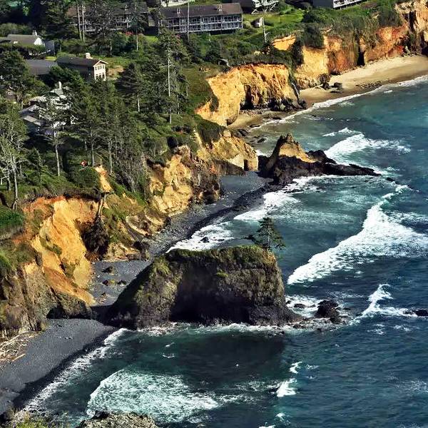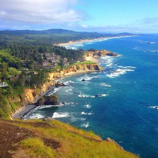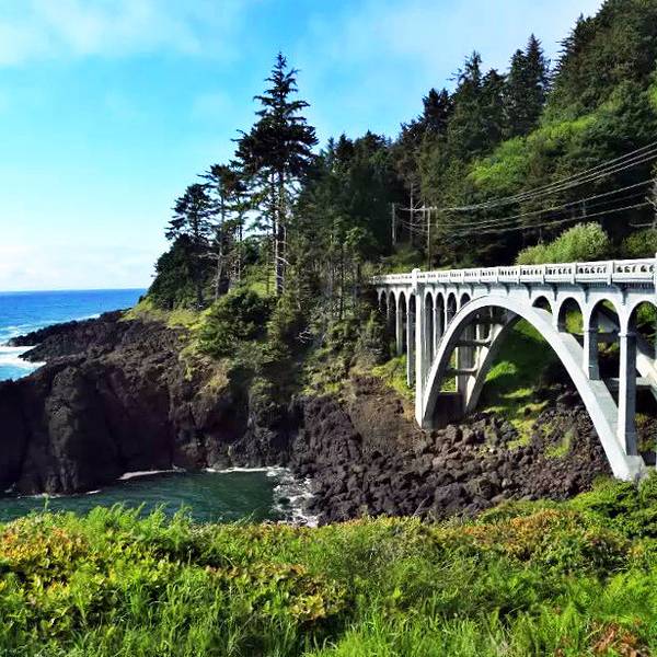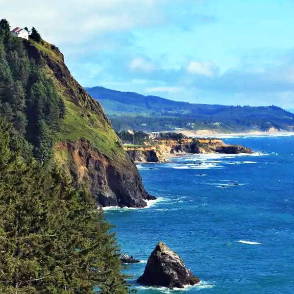 俄勒冈州长达362英里的被太平洋的激流巨浪冲刷而成的雄伟海岸线是大自然鬼斧神工的杰作之一。多亏了20世纪初具有远见的州政府,俄勒冈州境内的海岸线全部被指定为公共用地,这样才使得大部分海岸线,尤其是中部和南部地区,仍保持在未开发的状态。人们可以沿着美国101公路,在整个大陆的西部边缘,从北到南进行一次当属美国最为惊心动魄的公路旅行。