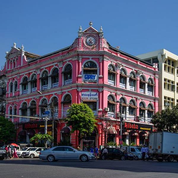 这段路其实并不长,但是在强烈阳光的炙烤下走3个多小时,还是挺累的。至于味道,没什么特别的,还不错啦沿着第37街往北,走到东西向的主干道Maha Bandula Road,又一栋色彩跳跃的建筑出现在眼前。Harley's是仰光一家经营西式简餐的连锁店,不过没机会品尝。Maha Bandula Road与Pansodan Street路口的一幢建筑,这骚柔...沿着第37街往北,走到东西向的主干道Maha Bandula Road,又一栋色彩跳跃的建筑出现在眼前。Harley's是仰光一家经营西式简餐的连锁店,不过没机会品尝。Maha Bandula Road与Pansodan Street路口的一幢建筑,这骚柔的粉红,真是服了... 这佛心素静的国度,外表竟如此艳丽,大爱这段路其实并不长,但是在强烈阳光的炙烤下走3个多小时,还是挺累的。于是决定结束上午的愉快旅程,回酒店休息。