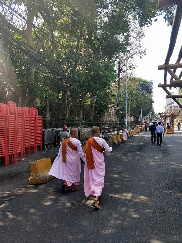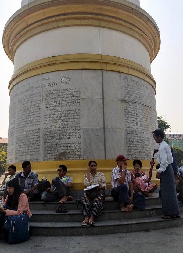 仰光人生活悠闲,如清晨来此,还能看见成对情侣在草坪上散步。广场上偶尔会有拾荒小孩伸手向你要钱,请不予理睬走开。如需换钱,在苏雷塔下的一圈商铺皆可以兑换,且价格公道。