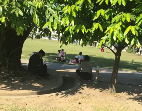 当地人会在公园里散步、乘凉和聊天,公园一角有儿童游乐设施,孩子们都玩得好开心。很不错当地人会在公园里散步、乘凉和聊天,公园一角有儿童游乐设施,孩子们都玩得好开心。前前后后路过好几次,终于在某天下午被热到痴呆时,抓住这颗救命稻草,因为西边有高楼,所以大片的阴凉落在公园里。很不错。