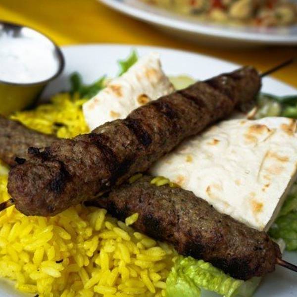 一家餐馆会用这么贵的桌布,那食物一定也错不了。 美食上桌,我们点了。准备欣赏美食咯。土耳其烤肉串