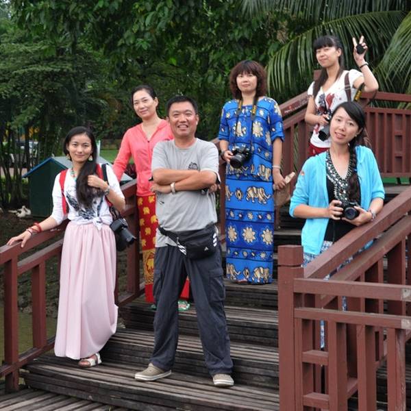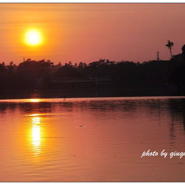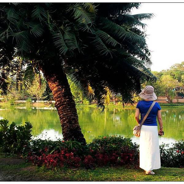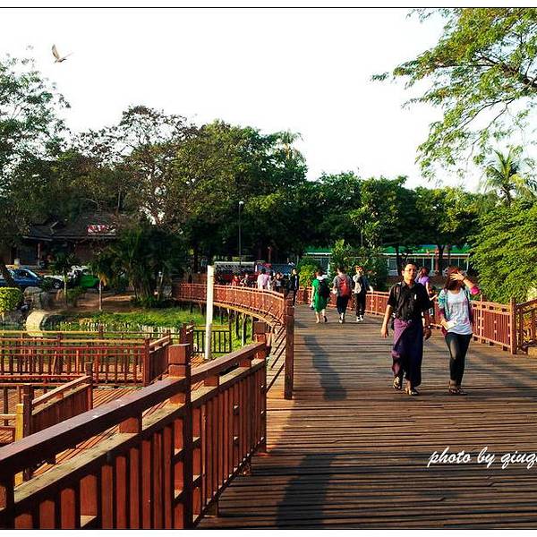 逛过了昂山市场,接着要去网上攻略介绍的卡拉威宫,这是仰光的又一道风景,一座别具一格的水上浮船。其外观造型为两只大鸟,身上驮着一座宝塔,色彩艳丽,辉煌有致。其内部是具有民族文化特色的自助餐厅还有助兴表演。 到达那里下午四点多,却被告知没有座位了(必须预订),可见这里的热火程度。不过现在想来,还是在外面更能享受周围环境带来的愉悦心情了。更何况里面的消费不低哦。 沿着湖边慢慢欣赏,看得出这里就是一个大花园,绿树成荫,湖水倒影,已经成为仰光人休闲的好去处了。
