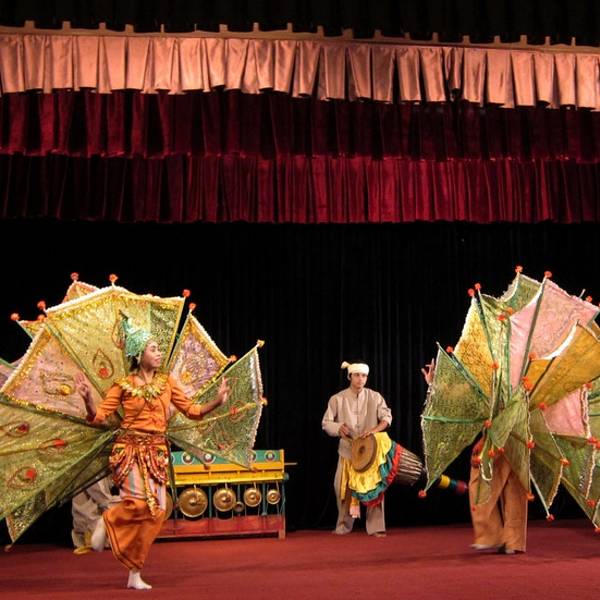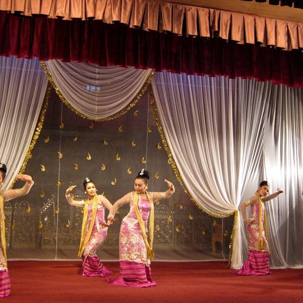 皇家湖上金鸟船形的卡拉威宫其实并不是一座宫殿,而是一个巨大的缅式餐厅,只供应缅式自助晚餐,餐厅中的剧场有传统缅甸歌舞表演。看过《舞乐传奇》并对 “骠国乐”心生向往的朋友一定不能错过。