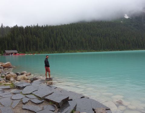 小伙伴们担心路上结冰,于是大家都一致没有逗留太久,结束一天的行程往回走,继续回美丽山脉小屋吃我...到达莱克路易斯湖后商业区较多,停车场和路上指挥交通的工作人员相对较多,我们到达又下着大雨,却不减很多游人们观湖之热情,雨太大我们停了一会,就继续前往莫兰湖(Moraine Lake)了,莫兰湖又叫梦莲湖,去的路...到达莱克路易斯湖后商业区较多,停车场和路上指挥交通的工作人员相对较多,我们到达又下着大雨,却不减很多游人们观湖之热情,雨太大我们停了一会,就继续前往莫兰湖(Moraine Lake)了,莫兰湖又叫梦莲湖,去的路上由路易斯湖的大雨转着了大雪,车窗前满天雪花飞,能见度十米左右,玩累的小伙伴们都比较担心,路上调头也比较危险,大家表示开到莫兰湖如果还是下雪,就看一眼湖的样子就回。运气不错的是我们快到达莫兰湖时雪停了,阳光穿过厚厚的云雾有了一点光,将湖边的山也显露出部分,开车在路上时看左手边的大山很大很近,就像站在身旁的巨人随时都要倒下来一样,阴天的雨雪光线,更渲染出巨大的压迫感。在莫兰湖待了一会,小伙伴们担心路上结冰,于是大家都一致没有逗留太久,结束一天的行程往回走,继续回美丽山脉小屋吃我们的热锅串串。 展开