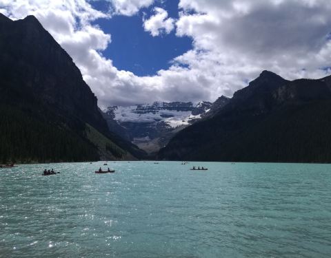加拿大最美最标志的湖,在那里可以带一天,风平浪静的时候就如一面镜子