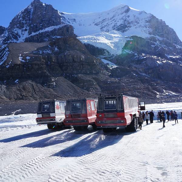 实用 另外天空步道本人感觉很一般,反正没有震撼到我;哥伦比亚冰原。过了冰原,山川更加壮阔哥伦比亚冰原我们会坐这特殊的大脚怪爬上高原!零距离的触摸远古冰川。哥伦比亚冰原冰川上的冰都是凝聚万年的结晶,在上面,你可以灌一些珍贵的冰川水,勇敢的你更可以喝一口,绝对会让你瞬间透心凉!哥伦比亚冰...哥伦比亚冰原我们会坐这特殊的大脚怪爬上高原!零距离的触摸远古冰川。哥伦比亚冰原冰川上的冰都是凝聚万年的结晶,在上面,你可以灌一些珍贵的冰川水,勇敢的你更可以喝一口,绝对会让你瞬间透心凉!哥伦比亚冰原哥伦比亚冰原很多人的注意力都在冰川上的徒步或大脚车,其实在游客中心的平台上驻足也是不错的选择,你完全可以欣赏到冰川周围壮丽的景色。哥伦比亚冰原Tips:在哥伦比亚冰原可以体验大脚车、冰川徒步和天空步道。本人很怕冷,同感的朋友也可以像我一样放弃徒步;另外天空步道本人感觉很一般,反正没有震撼到我;大脚车不用提前定,到了直接买票即可。大家记住!大家记住!大家记住!一定要穿厚衣服,女生要戴帽子,因为风特别猛,加上超级晒,不想皮肤损伤就别冒险!涂好高指数的防晒霜,带上围巾再上去!