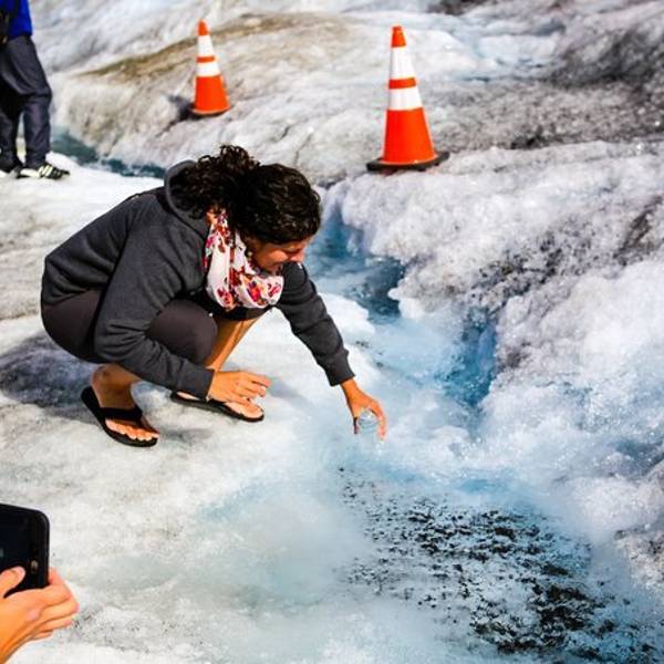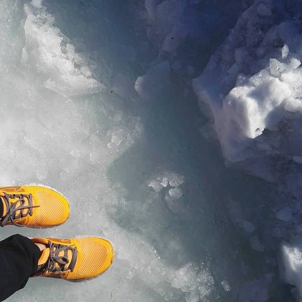 虽然看着近在眼前,但开近了才知道真的只有那种大脚车才能上的去,而且温度骤降,大太阳照着也就能勉强在上面蹦跶一会儿,一阵风吹过来简直就不能待人啦😭。我们还算运气不错,本来等车的时候还有点儿阴天,结果开上去正好云被风刮走了露出了太阳☀️16:45差不多又是赶上今天最后一班,再晚点儿太冷了就上不去啦有没有想到流浪地球里的冰原车:道路千万条 安全第一条真真的万年寒冰,走近了看透着一种绿色水里都是冰碴子,分分钟冻掉手指到这儿我们带的各种羽绒服毛帽子算是都用上了!全副武装也就能坚持半个小时吧,不信的快上来试试哈 展开