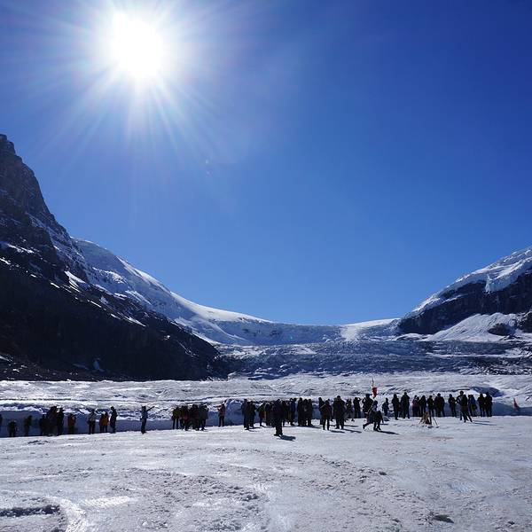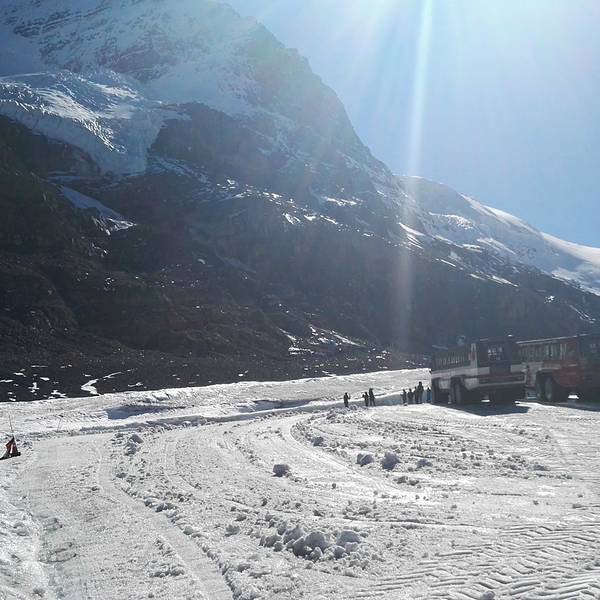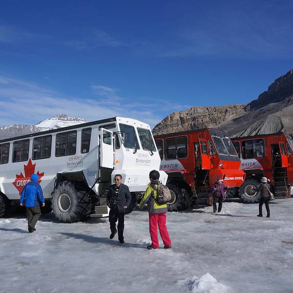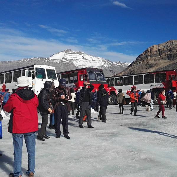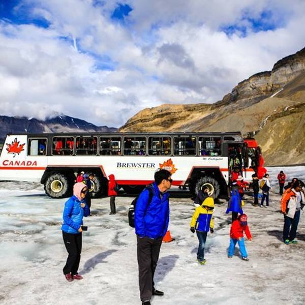 金骆驼 这是一个非常非常棒,非常让人惊艳,也必须要来的景点。我们游览的这一天算是游客比较多的。其实非常冷哥伦比亚冰原(Columbia Icefield),位于加拿大不列颠哥伦比亚省(BC省)和艾伯塔省(Alberta省)交界处,是落基山脉的第一大冰原,也属于北美洲最容易进入的冰川群之一。在一个阳光灿烂的日子,我们搭乘Brewster...哥伦比亚冰原(Columbia Icefield),位于加拿大不列颠哥伦比亚省(BC省)和艾伯塔省(Alberta省)交界处,是落基山脉的第一大冰原,也属于北美洲最容易进入的冰川群之一。在一个阳光灿烂的日子,我们搭乘Brewster的机场快线大巴车从南侧的露易丝湖出发,一路向北,前往哥伦比亚冰原。