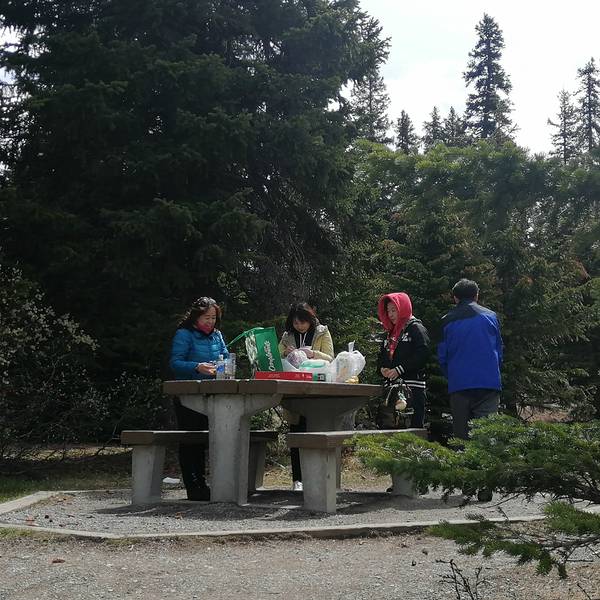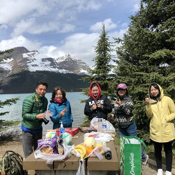 回到班夫区域了,佩托湖和弓湖几乎连着,湖面上居然还飘着雪水冲下来的冰,高山冰湖相伴来个野餐不亦乐乎