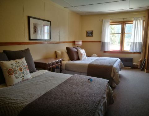 ...超赞,守着湖光山色,附近还有环湖的徒步线路,一早一晚,没有游客的喧嚣,可以静下心来慢慢欣赏风景弓湖边上的唯一一家酒店,旺季价格不菲,位置超赞,守着湖光山色,附近还有环湖的徒步线路,一早一晚,没有游客的喧嚣,可以静下心来慢慢欣赏风景。酒店装修风格很复古,公共区域有舒适的皮沙发,还有免费的咖啡...弓湖边上的唯一一家酒店,旺季价格不菲,位置超赞,守着湖光山色,附近还有环湖的徒步线路,一早一晚,没有游客的喧嚣,可以静下心来慢慢欣赏风景。酒店装修风格很复古,公共区域有舒适的皮沙发,还有免费的咖啡和各类茶包,旁边有个小超市和纪念品商店。服务员特别客气和热心,房间内设施倒是一般,但房间特别大。预订的时候说是无餐,但实际有提供早餐,很简单,但有水果提供。 展开