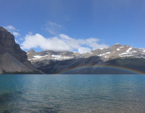弓湖是进入班夫国家公园的第一个湖。有远处的山峰衬托给了刚刚进入班夫公园的游客第一个惊喜弓湖是进入班夫国家公园的第一个湖。水面宽阔,水的颜色蓝中带绿,绿中带蓝。有远处的山峰衬托给了刚刚进入班夫公园的游客第一个惊喜。弓湖就在路边,可以近距离观看,拍照。班夫公园天气变化无常,一会儿就雨过...弓湖是进入班夫国家公园的第一个湖。水面宽阔,水的颜色蓝中带绿,绿中带蓝。有远处的山峰衬托给了刚刚进入班夫公园的游客第一个惊喜。弓湖就在路边,可以近距离观看,拍照。班夫公园天气变化无常,一会儿就雨过天晴遇彩虹了。 展开