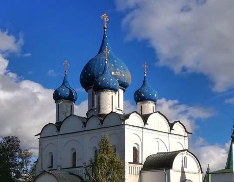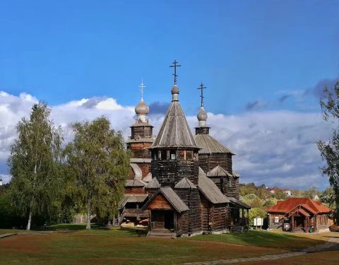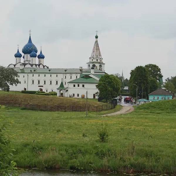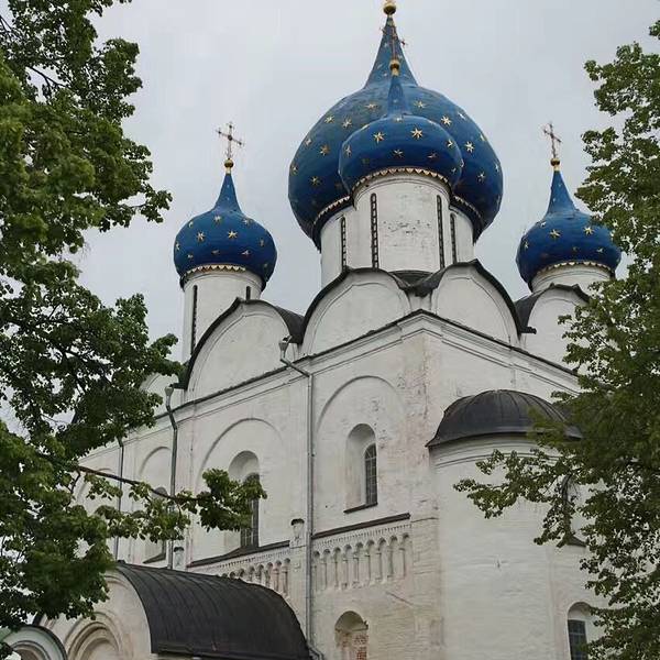 在小镇的每个地方都能看见克里姆林的蓝顶教堂,整个小镇一派田园风光从古贸易长廊往南走几百米就是苏兹达尔克里姆林,旁边是木造建筑博物馆。在小镇的每个地方都能看见克里姆林的蓝顶教堂,整个小镇一派田园风光。