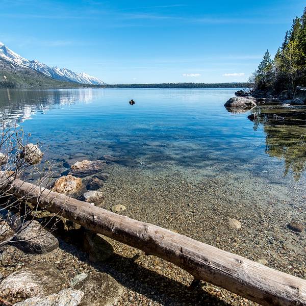 遗憾的是这里无法真正下到湖边,只能在远离湖岸的小路上拍摄,会被树丛阻挡一部分视野继续沿西线往北走,就可以抵达珍妮湖(Jenny Lake)。