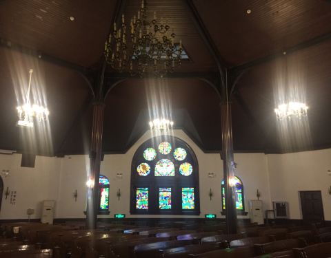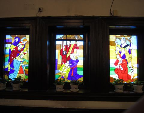 玻璃非常显眼,图案比较精致今年11月,北京崇文堂正在举办“我的教堂我的家”主题系列活动,中午游客很少,能够走进教堂内部看看,分有主堂、副堂,规模比较大,能够容纳数百人。玻璃非常显眼,图案比较精致。