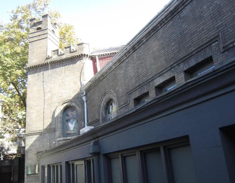 位于崇文门东北侧,在一胡同内,非常清静的地方,老建筑,举办教学和慈善活动。