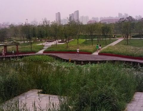这里是天津的首座湿地公园,前身是靶场,现在为周边市民休闲健身娱乐的场地。