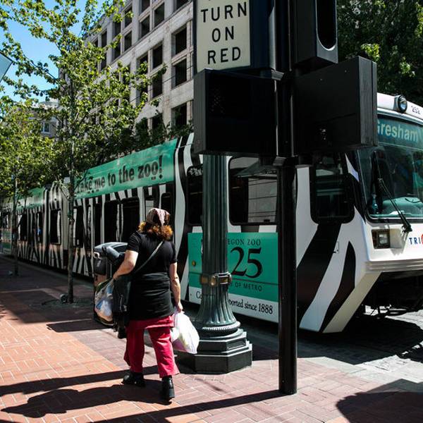 2.坐车到Pioneer Square North MAX Station(蓝线),Library/SW 9th Ave MAX Station(蓝线)。