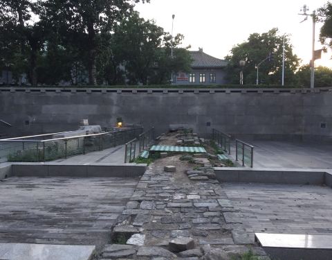 东安门遗址,位于故宫午门广场到王府井步行街的中间。是一个下衬广场🀄️,是明代皇城的城墙遗址