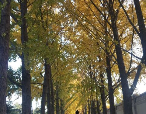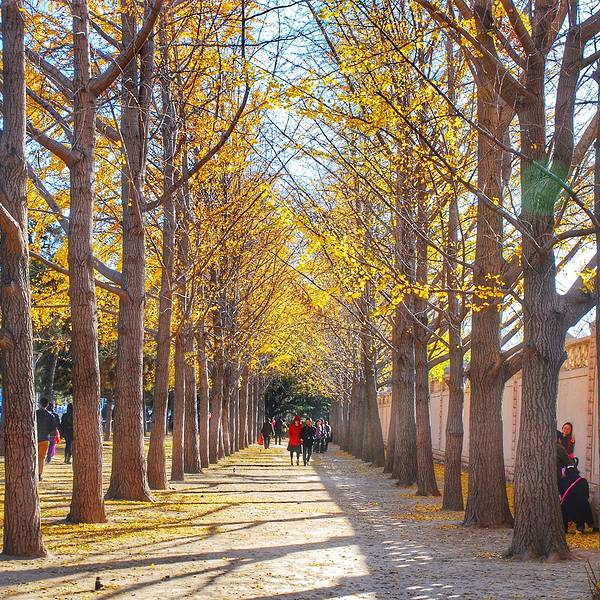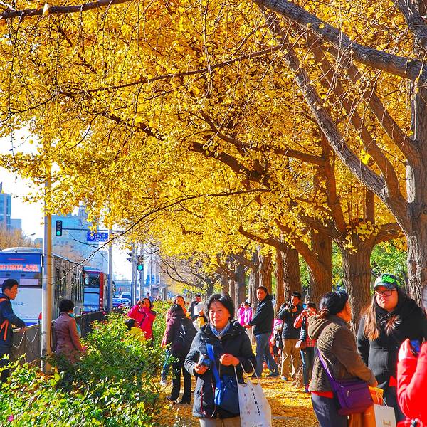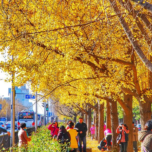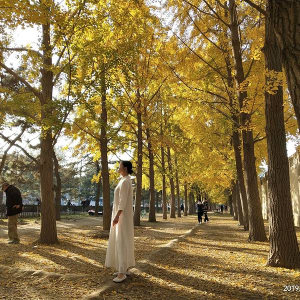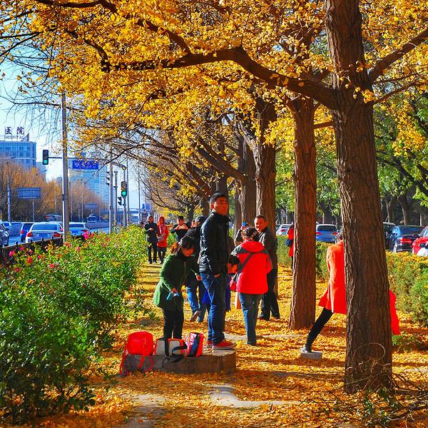 ...是秋季的主角,人人都为之倾倒,每年十月下旬(霜降前后)到十一月上旬就是红叶和银杏观赏的最佳季节秋季是红叶和银杏的舞台,它们是秋季的主角,人人都为之倾倒,每年十月下旬(霜降前后)到十一月上旬就是红叶和银杏观赏的最佳季节。北京看红叶当然是香山,而银杏最有名的当然就是钓鱼台国宾馆门前的这个银杏大...秋季是红叶和银杏的舞台,它们是秋季的主角,人人都为之倾倒,每年十月下旬(霜降前后)到十一月上旬就是红叶和银杏观赏的最佳季节。北京看红叶当然是香山,而银杏最有名的当然就是钓鱼台国宾馆门前的这个银杏大道。一叶知秋,北京城里的秋叶,可谓是秋天最美的“信使”。走在北京秋天的街头巷尾,常常能看到满目的黄叶迎风飘舞,而最美的黄叶,就是银杏。据说这里的银杏是北京最早种下的一批,现在钓鱼台可以说是北京观赏银杏的一个地标了。来的有点晚,这里的叶子已经掉光啦。银杏树下的芳草地已被厚厚的金色的银杏树叶覆盖,大家不约而同地把它当做摄影的背景。外面马路边还有很多,叶子还没有掉,颜色精华。这里大大小小有近千棵银杏,都变黄的时候,走在银杏林里,眼前就是一片金黄。北京有银杏的地方有很多,但是最有名的,还得说是钓鱼台的银杏大道,已经成了品牌。银杏是落叶大乔木,4月开花,10月成熟。秋天成熟时叶子就会变成黄色或橙黄色,颜色鲜艳,非常漂亮,被列为中国四大长寿观赏树种,就是松、柏、槐、银杏。银杏树的果实俗称白果,因此银杏又名白果树,我记得小时候我就吃过这种白果,那是我妈捡回来的,闻起来有点臭臭的,但是停电的时候拿蜡烛烤着吃,果壳裂开,里面的果仁特别好吃。但是现在和我妈说,她一点都不记得了,而且对这种吃法觉得匪夷所思。所以也可能是我记错了,或者那也可能是我前世的记忆。银杏树生长较慢,寿命极长,自然条件下从栽种到结银杏果要二十多年,四十年后才能大量结果,因此又有人把它称作“公孙树”,有“公种而孙得食”的含义,是树中的老寿星,具有观赏、经济、药用等价值。银杏树具冬暖夏凉特异功能。盛夏时节,掌心触摸银杏树干,手感冰凉,触摸其他树干(柳树),掌心觉热。营造银杏林区,银杏林带,形成规模,造成小区气候,对农田、居住区均有调节气温改善小气候的良好影响。有一点要特别提示一下,主要是像我们一样开车来的朋友。钓鱼台国宾馆东墙外迎宾路没有停车的地方,只有在甘家口或三里河停车,然后步行或骑自行车前往,反正现在小黄车到处都是。就餐也在这两处有。如果你要向别人问路,就问“钓鱼台国宾馆东门”,从东门一直向北,都是一片银杏树。还有建议早一点去,或者下午4点以后去,其他时间去了,景色不好。 展开
