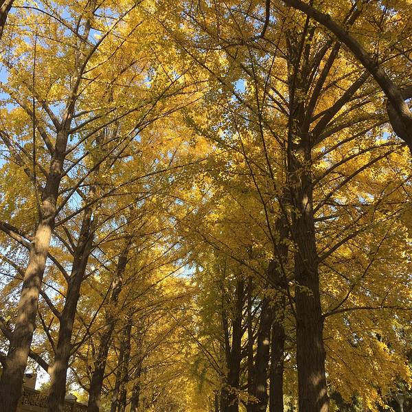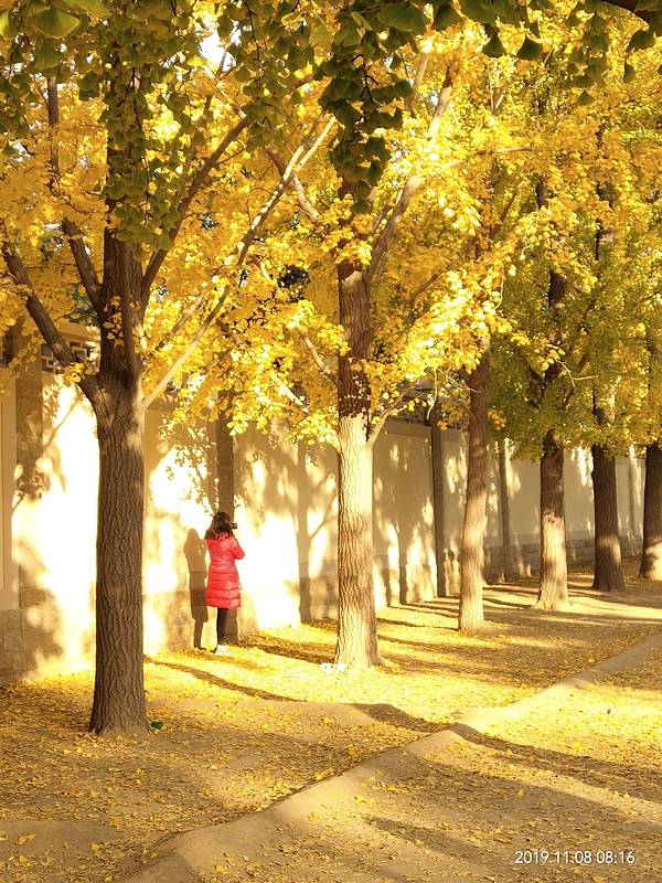 如果看够了秋的多愁善感,那就来看看钓鱼台国宾馆墙外的银杏大道此时,让我想起秋天,秋雨染遍落叶黄,寒风洒金千里霜,银杏叶漫天飞舞,的路装满过去的时光,时光里有你,由我看你穿嫁衣,出嫁的伤,怪不得,这路走起这么长。