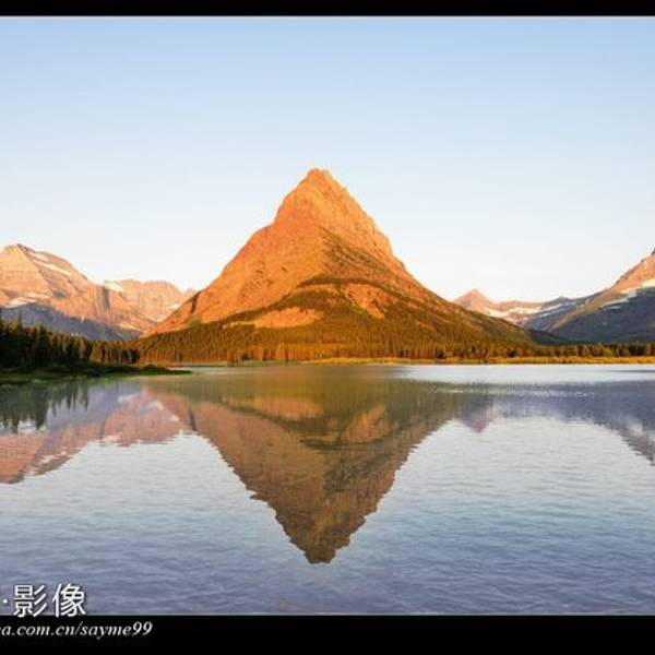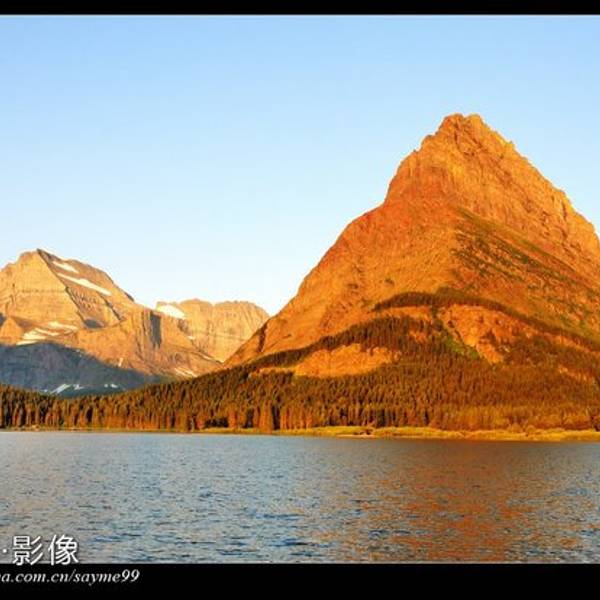 在旺季游览冰川国家公园的Many Glacier景区,最幸福的事情之一就是能够预定到Many Glacier Hotel的湖景房。酒店的历史差不多跟Many Glacier景区一样长,酒店的走廊、大堂也差不多就是冰川国家公园历史的图片展。Many Glacier景区内的很多活动也都是围绕酒店展开的。跟黄石、大蒂顿等国家公园一样,美国国家公园景区内酒店都是无法满足旺季需要的,通常订不上房的游客基本都需要去营地或景区外面去住。 Many Glacier Hotel就坐落在Swiftcurrent Lake(急流湖)的边上,与著名的威尔伯山(Mountain Wilbur)隔湖相望。清晨,初升的太阳把威尔伯山(Mountain Wilbur)染成金黄,在平静的湖水中映出雄伟、美丽的倒影。这时在酒店湖景房的阳台上,呼吸着冰川特有的清新空气、神清气爽地迎接新的一天的到来,那份感觉只恨此刻不能久长时! Many Glacier Hotel后面,Swiftcurrent Lake湖边有一处拍摄威尔伯山(Mountain Wilbur)日出的绝佳地点(http://goo.gl/maps/Hel2S)。 Swiftcurrent Lake湖不是很宽,高大的威尔伯山(Mountain Wilbur)离得很近,这里拍摄最好使用18mm以下的广角镜头。拍摄湖水中“金山”的倒影,既要有晴朗的天空、还有有风平浪静的环境。20日早上,老范早早起来到楼下等待这一时刻。日出前,湖上一点儿风都没有,湖面平静得像一面镜子。随着太阳慢慢升起,当阳光照在威尔伯山(Mountain Wilbur)上,把整个山头映照成金黄色的时候,湖面已经起风、不再平静,很快波浪中就再也看不到倒影了。