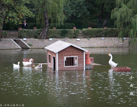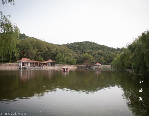 主要景观:海泊枫情园、小西湖、姊妹亭、犀牛广场、北岭山公园园记等
