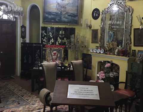一座木构两层建筑,一个大花园。除了此建筑,旁边还有一座奶黄色神庙类建筑,半圆顶,也雕刻了些人物一座木构两层建筑,一个大花园。木构大建筑在印度算得稀有。这建筑很有特点,木构深咖灰黑色,砖墙橘红色。一楼的前半是通顶大厅,几多木柱,后半是展厅,一些图片。二楼只有后半部,也是木柱拱门样式,正面中央...一座木构两层建筑,一个大花园。木构大建筑在印度算得稀有。这建筑很有特点,木构深咖灰黑色,砖墙橘红色。一楼的前半是通顶大厅,几多木柱,后半是展厅,一些图片。二楼只有后半部,也是木柱拱门样式,正面中央有一前凸小阁台,模样像是观剧包厢佳座。除了此建筑,旁边还有一座奶黄色神庙类建筑,半圆顶,也雕刻了些人物。 展开