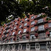 武康大楼,位于上海徐汇区淮海中路1842-1858号。大楼始建于1924年,一些文化演艺界名流均入住过这里,武康大楼,占地1580平方米,总建筑面积达9275平方米。大楼总体为钢筋混凝土结构,楼高八层,总高30余米,外观为法国文艺复兴式风格。由于所处的 地理位置有限,大楼底层采用骑楼样式,将店面橱窗向内收缩,留出人行道空间。另外,一二层外立面采用水泥仿石墙墙面,使之成为大楼基座的样式。自三层起至 第七层,外立面改用黄褐色砖块贴面。顶楼的第八层继续使用水泥仿石质墙面,因此大楼呈现三个不同区段。在第三层和第八层,设计者采用连续长阳台作为 三阶段腰线,同时强化其层次感。在大楼的北向,为解决房间采光问题,设计者特地在朝北处,向内留出两个大型天井。