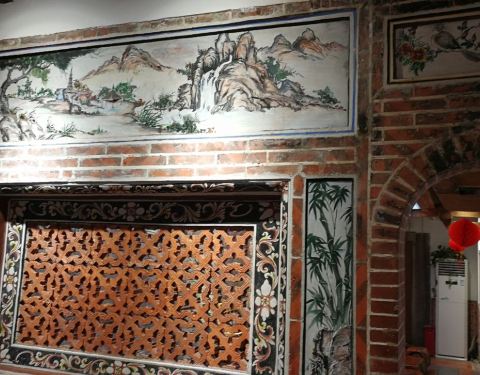 里面有一些民俗的东西,建筑形式有些像大的四合院,中间是个大天井,建筑上的绘画比较精美……