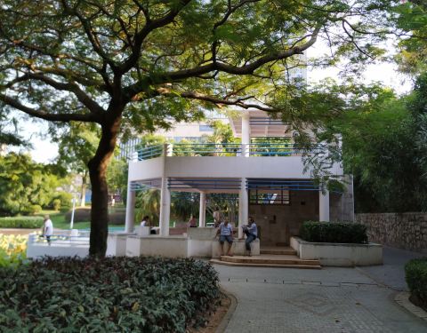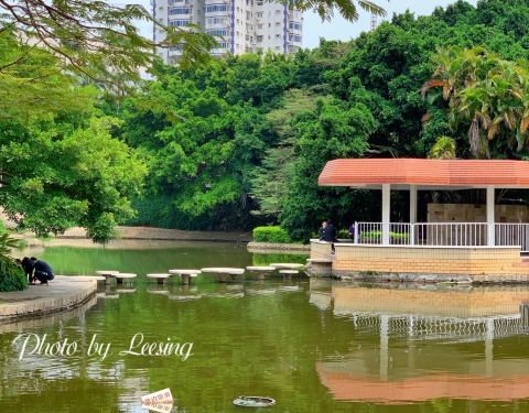 公园位于一大片社区里,周边很多居民楼,不过公园内部景色还是有几分的,特别是荷塘边的风景,雅致幽静,还有一大片热带树木,大榕树那边人也多。