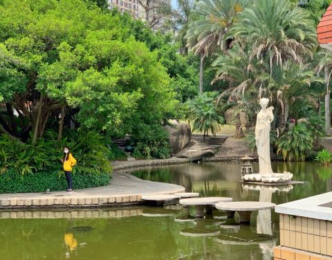 ...过公园内部景色还是有几分的,特别是荷塘边的风景,雅致幽静,还有一大片热带树木,大榕树那边人也多