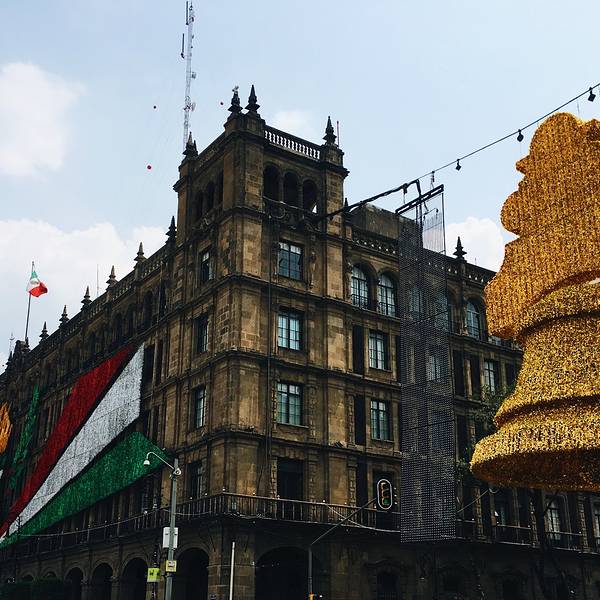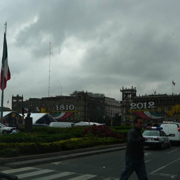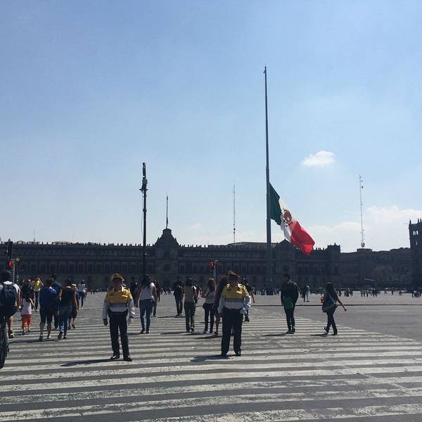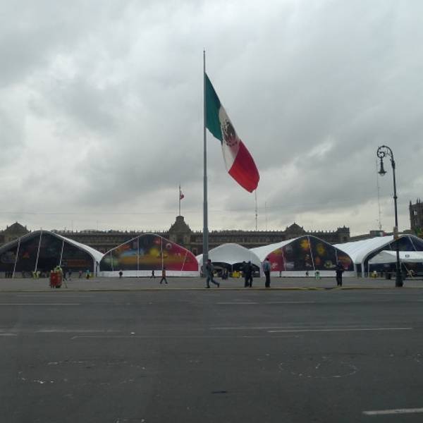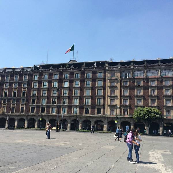 这里是墨西哥城的心脏地带。Zócalo意为“底座”,因为曾计划建造的大型独立纪念碑只完成了底座部分。南北宽220米,东西长240米,世界上最大的广场之一。
