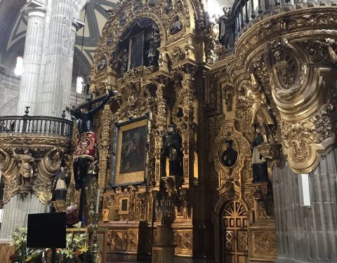 墨西哥城主教座堂位于基柱广场的北侧,是墨西哥城规模最大历史最悠久的教堂之一墨西哥城主教座堂位于基柱广场的北侧,是墨西哥城规模最大历史最悠久的教堂之一。去的时候赶上内部有活动,先后跑了三次才进到最里面。教堂据说使用的砖来自不远处的大神庙,西班牙人入侵后拆了大神庙盖了这座教堂。墨西哥城主教座堂位于基柱广场的北侧,是墨西哥城规模最大历史最悠久的教堂之一。去的时候赶上内部有活动,先后跑了三次才进到最里面。教堂据说使用的砖来自不远处的大神庙,西班牙人入侵后拆了大神庙盖了这座教堂。 展开