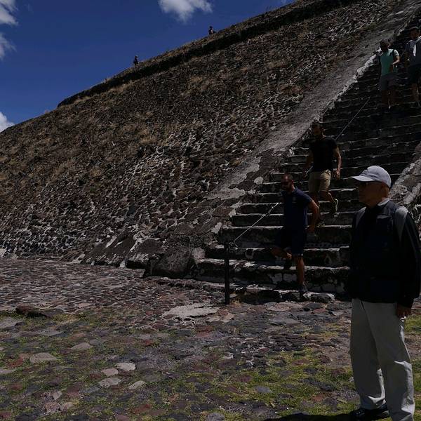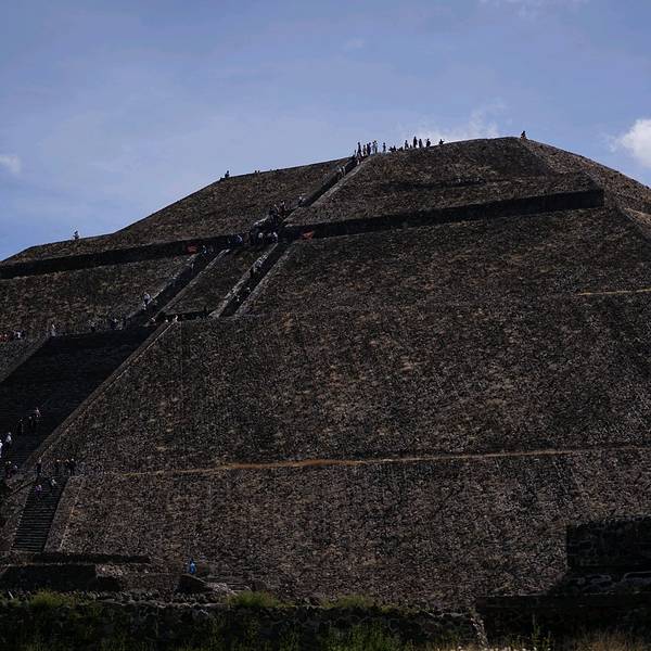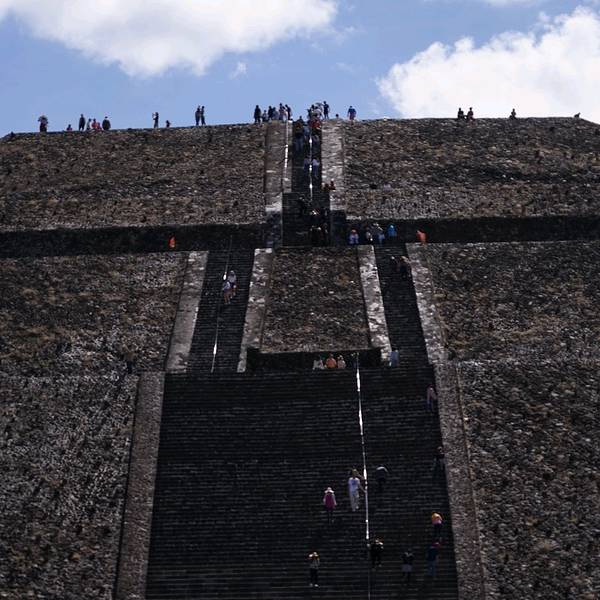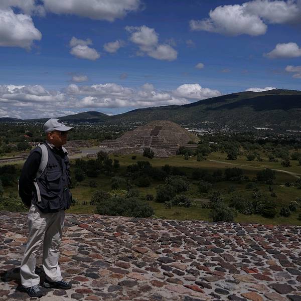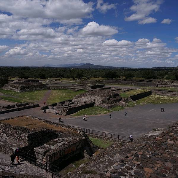特奥蒂瓦坎古城,位于墨西哥首都墨西哥城东北约40公里处。在其繁荣兴盛的六、七世纪,全城有20万人口,规模可以和中国当时的长安相比。1987年联合国教科文组织将特奥蒂瓦坎古城作为文化遗产,列入《世界遗产名录》。 墨西哥城北的广阔高原1,矗立着两座巍峨壮观的金字塔。墨西哥人骄傲地把它们同埃及的金字塔相比。这就是闻名世界的墨西哥太阳和月亮金字塔。人们常说,到中国不去长城等于没到过中国。同样,到墨西哥不去看一看这两座金字塔,也就等于没来过墨西哥。 太阳和月亮金字塔是特奥蒂瓦坎古城遗址的主要组成部分。特奥蒂瓦坎古城是哥伦布发现新大陆前、美洲的一个重要政治和宗教活动中心,光辉灿烂的印第安文化之一。它有"诸神之城"的美名。当阿兹特克文化在美洲中部高原兴起时,特奥蒂瓦坎古城已经成为废墟。人们来到寂静广阔的古城废墟时,看到宏伟壮观的建筑遗迹,不禁肃然起敬。