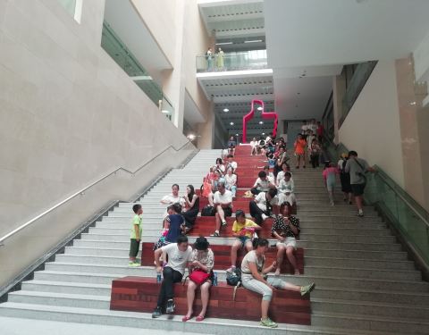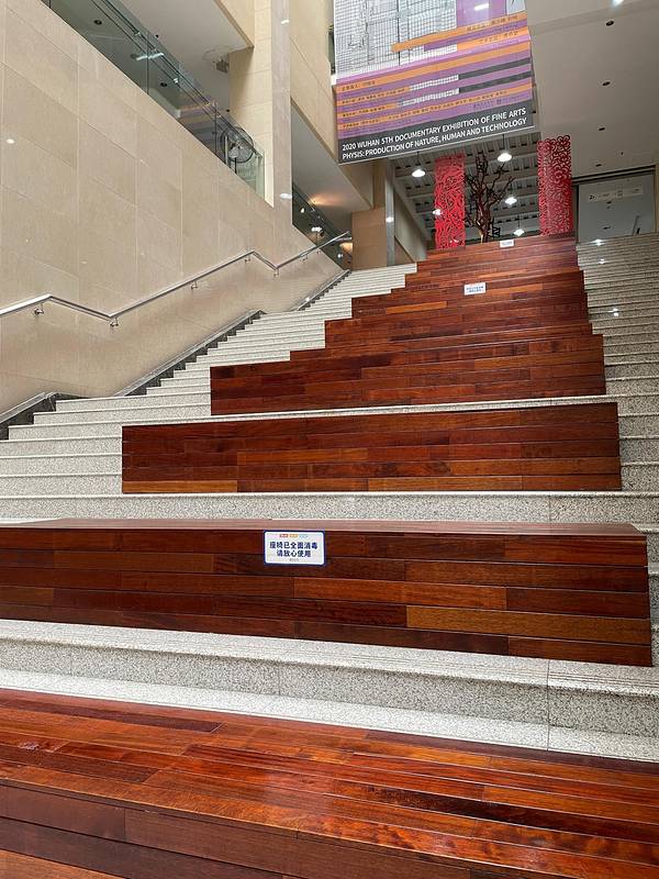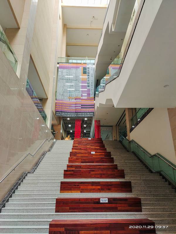 进了馆内发现里面空间意外的大,先是美术馆大堂正厅的中庭顶部设计为透光长廊,室外的阳光直达室内,霸气的台阶式座椅,成为一道亮丽的风景,分分钟钟出大片。