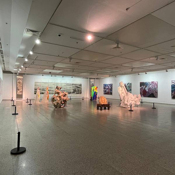 在美术馆二楼开放区域的雕塑长廊展区,固定陈列不同形式的雕塑作品。千奇百怪的艺术品,冷冰冰的雕塑,但往往能表达滚烫的情感,你可以在此驻足停留,仔细体会雕塑艺术的独特魅力。