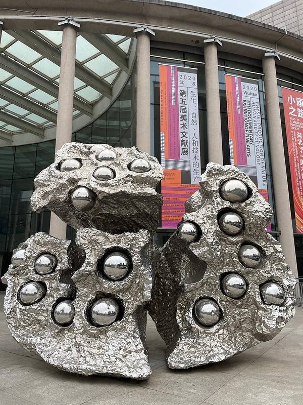 在武汉的东湖之滨,湖北省博物馆旁,一座4层的建筑虽然不具个性化,但门口摆放的银光闪闪的雕塑说明着这座场馆的艺术不凡。