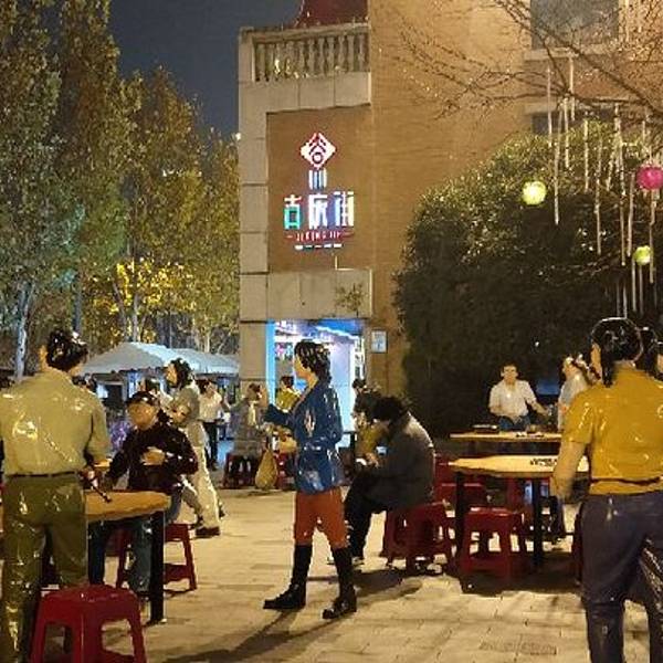 虽然这里是重新改建的吉庆街,街头围着桌子团团坐的雕塑还原着昔日的盛况,他们有的吃菜喝酒,有的弹琴吹喇叭...黎黄陂路过了继续走一点点就到了中山大道吉庆街,武汉人素有这样说法:“过早户部巷,宵夜吉庆街”。