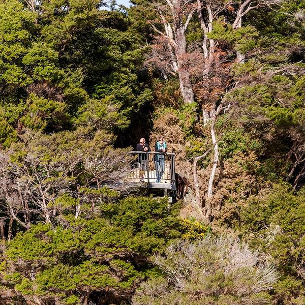 这里独特的地理位置,山坡上混合生长北岛和南岛的植物。公园中有多种鸟类和野生动物。
