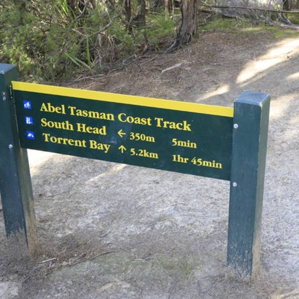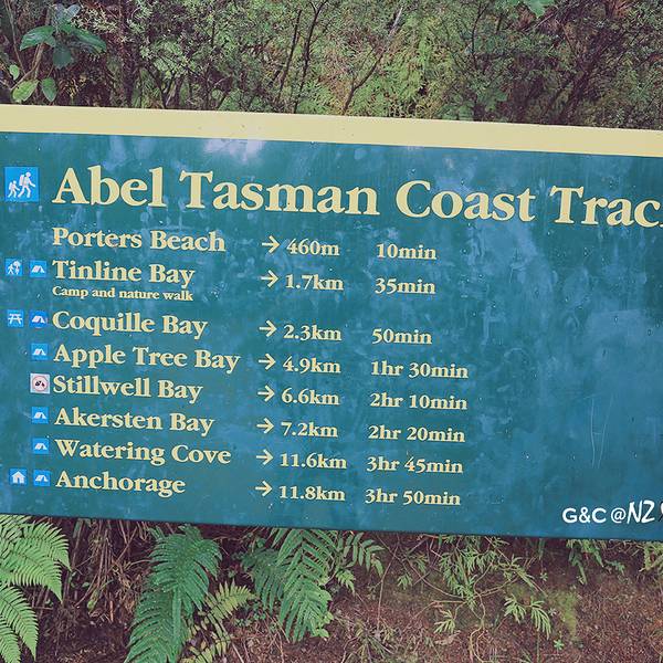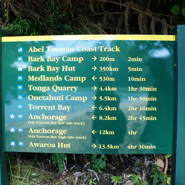 下午的6公里多的徒步就从这个沙滩开始。塔斯曼国家公园内有着绵长的徒步道,如果参加一日游或者三日游的话,你的向导会非常清晰地告诉你怎么走和走多远,以及一路上都有些什么看点等。我们走的这条徒步路线是公园内最经典的短途徒步路线,虽然没有什么难度,但是路上有不少精彩的景色:沙滩、河流、桥梁、登高等。比如上面这个牌子,我的目的地是Torrent Bay,在某个岔路的时候,我就一定能够看到路牌,不仅告诉目的地的距离,还会预估一个时间,很令人放心。最后抵达Torrent Bay也就是我的目的地时,与指路牌上预估的时间完全相同,这还算上了我在途中拍照和短暂的休息时间。 展开